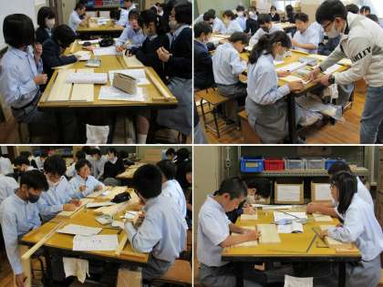 1年3組の技術科の授業では、前回の授業で自分が選んだ制作物の木材加工に取り掛かりました。