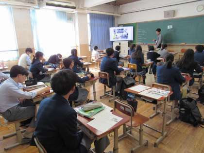 3年3組の英語の授業では、ガンディーに関する簡単な紹介について、聞き取ったり、読み取ったりしました。