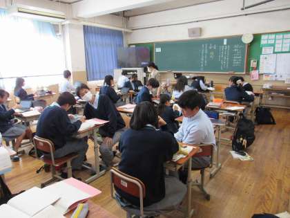 3年4組の国語の授業では、バディーを組んで和歌の鑑賞の発表をするに先立ち、下調べをしました。