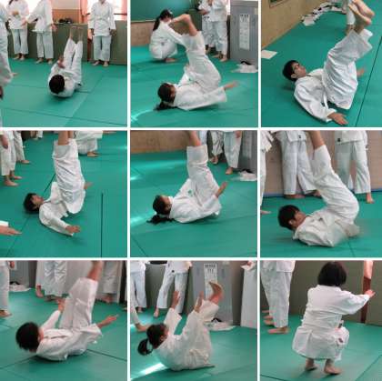 3年3組の保健体育科の授業では、柔道の受け身(後ろ受け身と横受け身)についてグループ内で他者評価をしました。