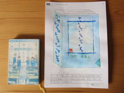 1年生の美術科の単元で「本の表紙をデザインする」というテーマで、図書室の本から好きな1冊を選んで、その表紙を新たにデザインしなおすことに挑戦した作品について、本校図書室や廊下の書籍紹介コーナーに当該書籍とともに展示しているので、このHP上でもご紹介します。