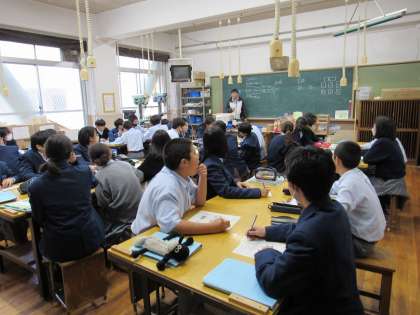 1年3組の技術科の授業では、木材加工に先立ち、使用する道具について学びました。