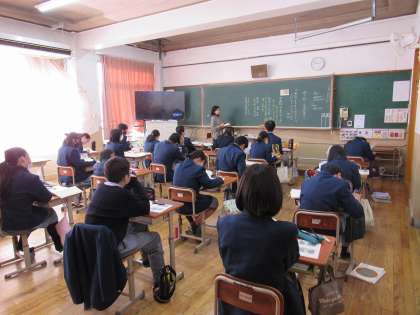 2年2組の英語科の授業では、ユニバーサルデザインを説明する文章を読んで、内容理解に努めました。