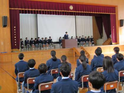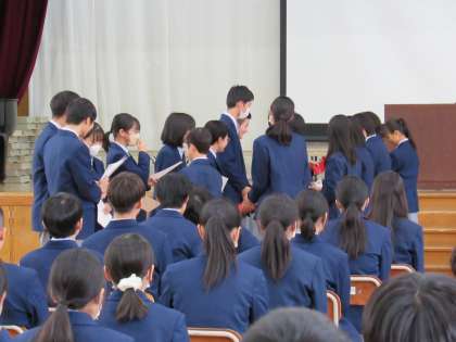 はじめに、生徒会長をはじめとしたそれぞれの旧役員から生徒会活動を無事に遂行できた感想や協力した生徒全員に対して感謝の意が述べられました。