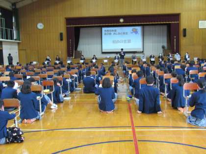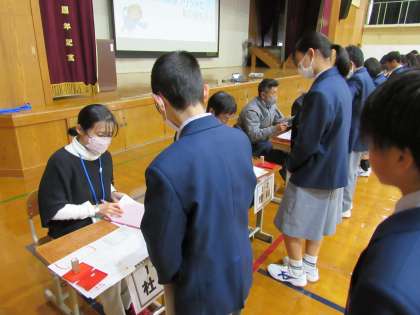これまで、コロナ禍においては感染予防対策として、各教室・各学年廊下で行っていましたが、今回から、コロナ禍前まで実施していたように、体育館で実施しました。