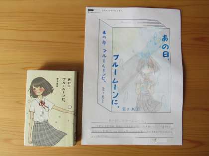 今回は、1年2組のSさんがデザインした【あの日、ブルームーンに。】の表紙です。