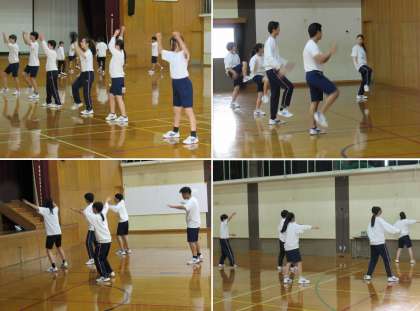 3年4組の保健体育科の授業では、ダンスの基本ステップの練習と学期末にクラスごとで発表するダンスの練習をしました。