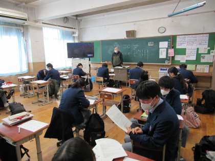 3年2組の理科の授業では、学年末テストの範囲の説明と復習をしました。