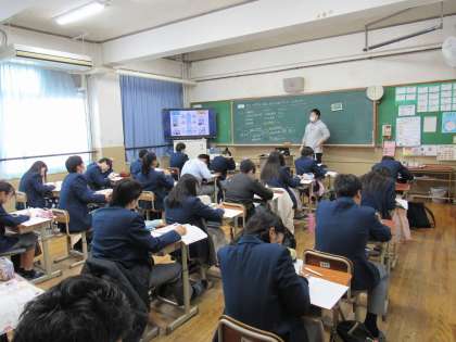 3年3組の数学科の授業では、データ分析の単元で、標本調査の結果から母集団を推定しました。