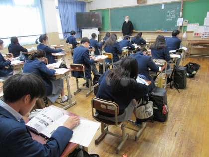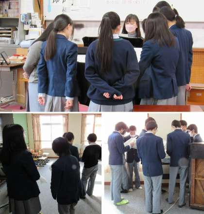 3年2組の音楽科の授業では、卒業式で歌う曲の歌詞テストに続いて、それらの歌唱練習をしました。