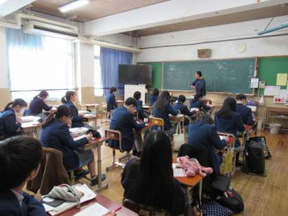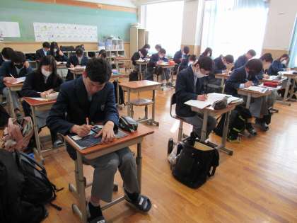 3年3組の数学科の授業では、入試と学年末テストに向けて、関数の復習をしました。