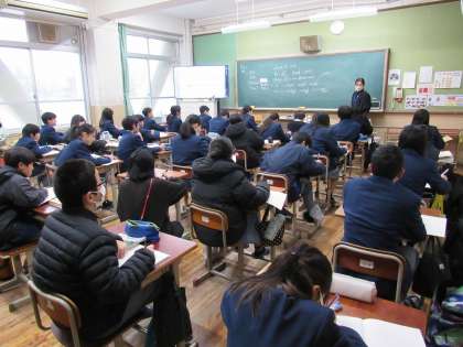 1年3組の数学科の授業では、立体の体積と表面積の復習をしました。