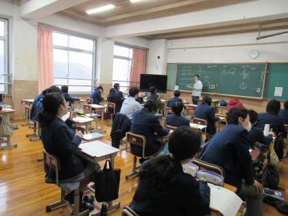 2年3組の数学科の授業では、中学校で習ってきたことの復習をしました。
