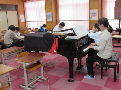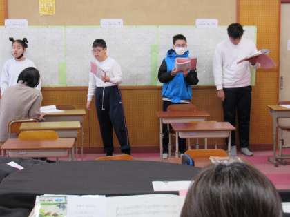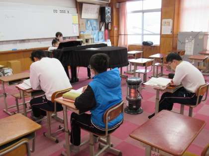 1組の音楽の授業では、キロロの「未来へ」をはじめとして「3年生を送る会」に向けた歌唱練習をしました。