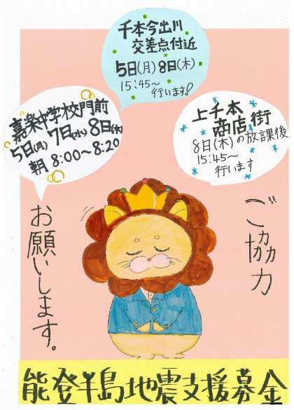 本校では、生徒会本部を中心に能登半島地震支援のための募金活動を行うことといたしました。