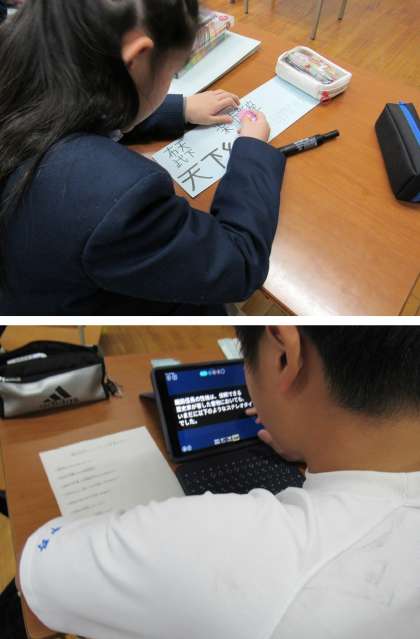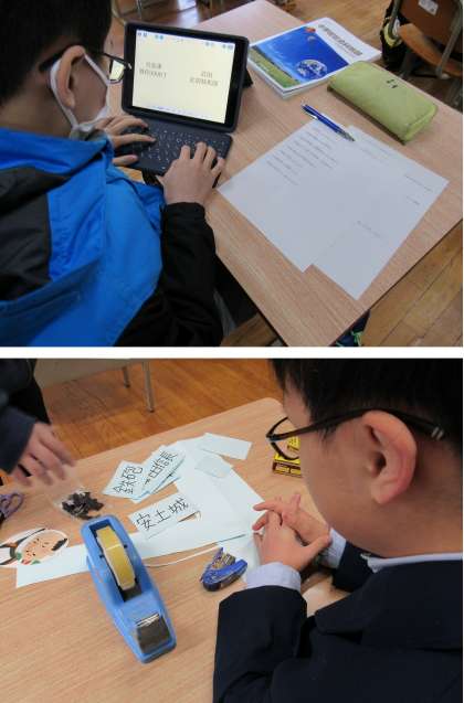 1組の社会科の授業では、前回に続き、校区内の育成学級の小学生に「織田信長」を紹介するための劇やプレゼンの資料を作りました。