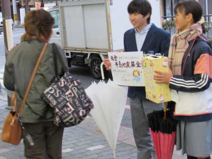 本日は、校門前と千本商店街で実施したところ、寒風の中、温かいご支援をたくさんの方々(外国の方もいらっしゃいました)にいただきました。