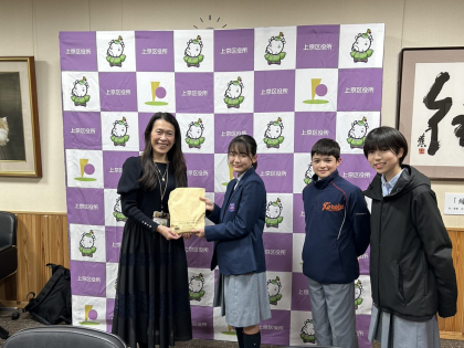 2月5日、7日、8日に能登半島地震支援募金の活動を、嘉楽中学校校門前、千本今出川交差点、上千本商店街で行い、たくさんの方々から温かい支援を頂きました。そして昨日(2月9日)、3日間で預かった募金の集計を行い、上京区役所の区長様に直接お届けすることができました。