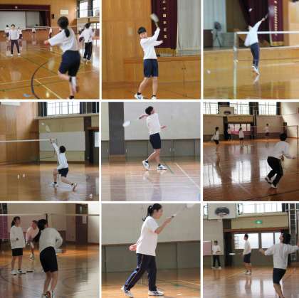 3年4組の保健体育科の授業では、バドミントンでシングルのゲームをしました。