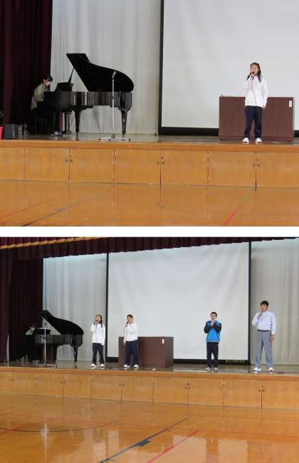 1組の音楽科の授業では、「3年生を送る会」のリハーサルをしました。