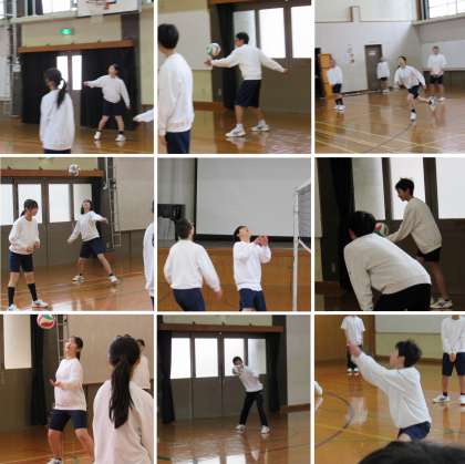 1年2組の保健体育科の授業では、バレーボールのゲームをしました。