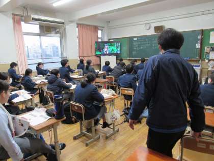 2年4組の社会科の授業では、3年生が社会の授業で作成したSDG’sの啓もうビデオを鑑賞しました。