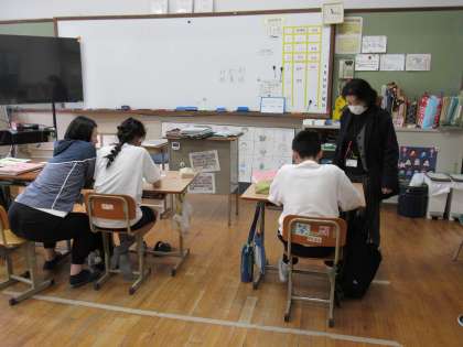 1組の国語科の授業では、それぞれの課題に取り組み、漢字の書き取りや練習問題を解きました。