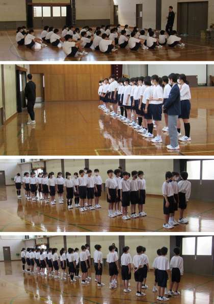 1年3組の保健体育科の授業では、集団行動の練習をしました。