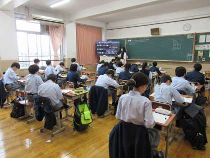 2年3組の理科の授業では、物質は原子がどのようにして集まってできているか、分子との関係についても考えました。