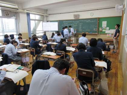 3年4組の数学科の授業では、ゴールデンウィーク期間中に与えられた課題を内容とした小テストに続いて、因数分解について学びました。