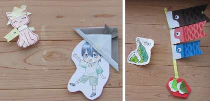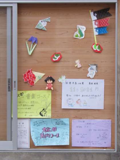 掲示板飾りは、「こどもの日」と「母の日」に因んだもので、「チマキ」「柏餅」「鯉のぼり」「兜をかぶったキャラクター」、「菖蒲の花」、そして「カーネーションの花束」などで、とてもかわいらしい作品に仕上がりました。(^_^)v
