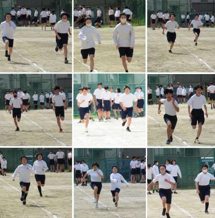 3年3組の保健体育科の授業では、新体力テストの種目の一つである、50m走の計測をしました。