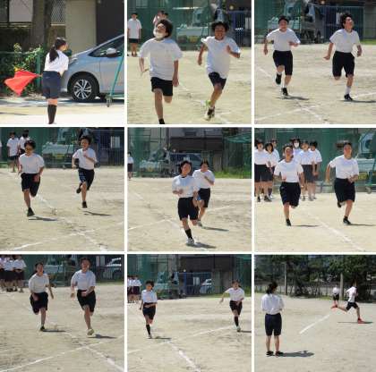 1年3組の保健体育科の授業では、新体力テストの種目の一つである50m走の計測をしました。