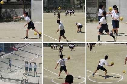 3年3組の保健体育科の授業では、新体力テスト種目の「ハンドボール投げ」の計測を行いました。