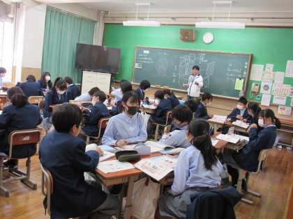 1年2組の家庭科の授業では、衣生活の単元で、GIGA端末を使って和柄の模様の調べ学習を行い、ロイロノートで自分が気に入った模様を提出しました。