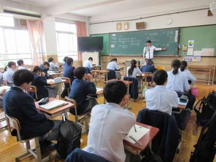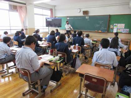 2年4組の理科の授業では、有機物の燃焼を分子モデルを使って書き表しました。