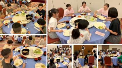 みんなで食事、その後レクが始まるようです。楽しい宿泊になるでしょうけど、明日のことを考えれば早めの就寝をお願いしたいところです。