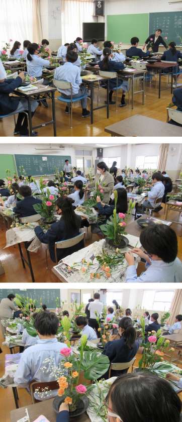 1年生の伝統文化体験【華道】生け花教室(2組)☆彡