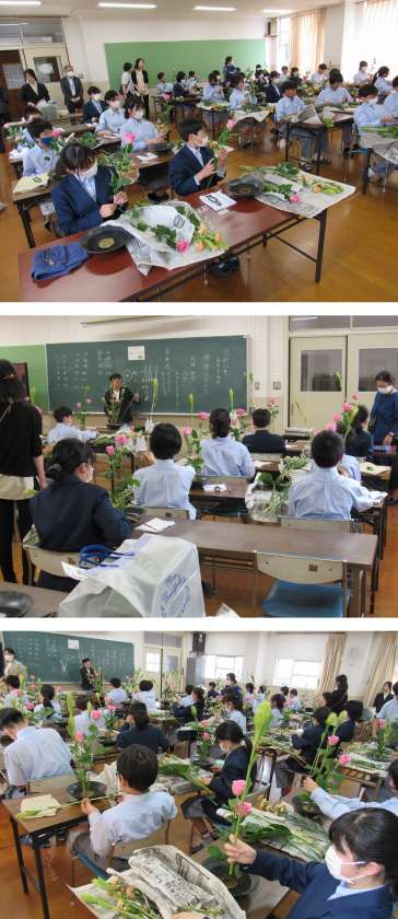 1年生の伝統文化体験【華道】生け花教室(3組)☆彡