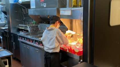 2人の生徒が、それぞれにポテトとドリンクを作っていました。
