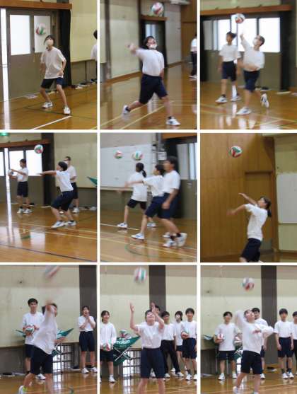 2年2組の保健体育科の授業では、バレーボールのサービスの練習とサービスを用いて得点ゲームをしました。