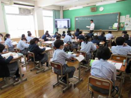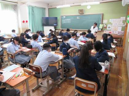 1年2組の数学科の授業では、「正の数」「負の数」の小テストに続いて、「正の数」「負の数」の利用について学習しました。