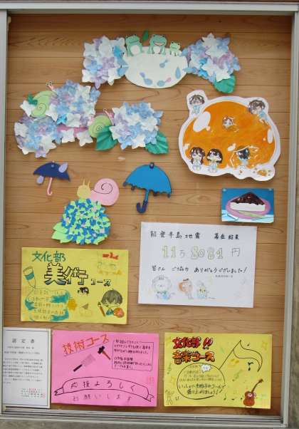 美術コースの掲示板飾りが部員の手で新調されたので紹介します。
