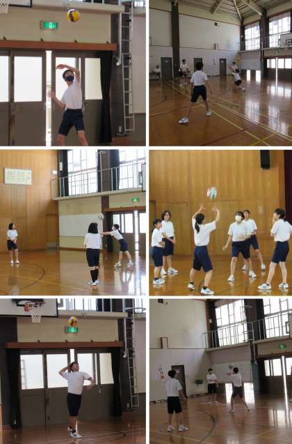 3年3組の保健体育科の授業では、バレーボールのサービス、スパイク、円陣パスの練習に続いて、最後にミニゲームをしました。