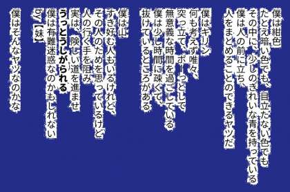 国語科授業開きに際し、自己紹介を兼ねて自分自身を表現して創作した詩を学年の廊下に展示しています。そこで、このHPでもご紹介しています。