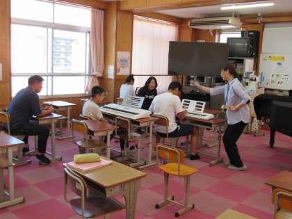 1組の音楽科の授業では、「銀河鉄道999」の合奏練習をしました。