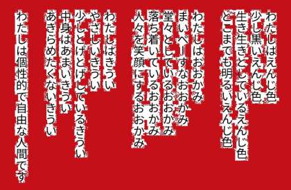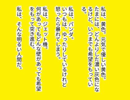 国語科授業開きに際し、自己紹介を兼ねて自分自身を表現して創作した詩を学年の廊下に展示しています。そこで、このHPでもご紹介しています。