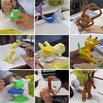2年2組の美術科の授業では、前回に続き「嘉楽中学校に生きるいきもの」の立体作品を制作しました。