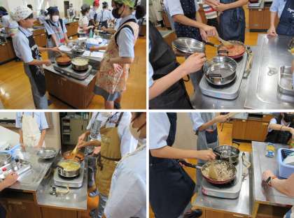 2年3組の家庭科の授業では、調理実習で「スパゲティミートソース」を作りました。