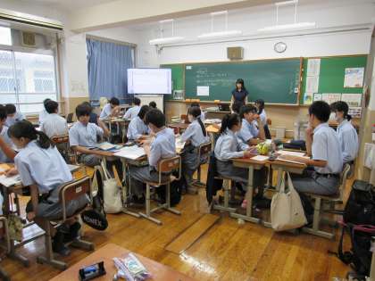3年3組の英語科の授業では、夏休みの課題となる長文問題の一部に取り組みました。